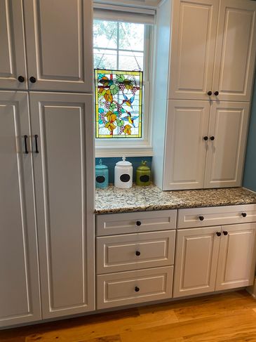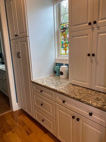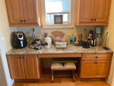 This is our Pantry conversion. Outlets are now inside the cabinets and clutter is gone!